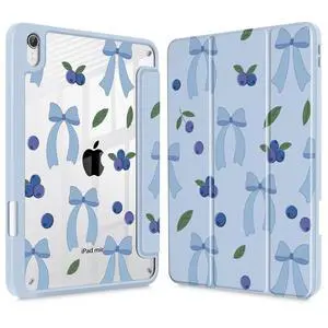 Tuiklol Clear Case for iPad mini 7 (A17 Pro 7th Generation) 2024 / iPad mini 6 (6th Generation) 2021 8.3 Inch,Built-in Pencil Holder Slim Transparent Back Shell Cover Auto Wake/Sleep, Berries-Blue