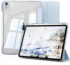 KVTVOU for iPad (A16) 11th Generation Case 11 Inch 2025, iPad 10th Generation Case 10.9 Inch 2022 with Pencil Holder, Shockproof Cover with Clear Back Shell & Soft TPU Transparent Edge, Sky Blue