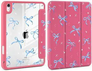 Loyrina Case for iPad Air 11 inch M3 2025 M2 2024,iPad Air 5th (2022) / 4th Generation (2020) 10.9 Inch Clear Back Shell Lightweight Shockproof TPU Trifold Stand Auto Wake Sleep Cute Cover, Ribbons