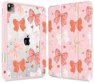 Lepeoac Case for iPad Pro 11 inch (4th, 3rd, 2nd & 1st Gen) 2022 2021 2020 2018, Buit in Pencil Holder with Shockproof Cover Clear Shell + Auto Wake/Sleep,Bows SD146