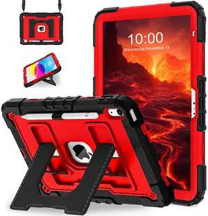 WESOROL Case for iPad A16 11th Generation 11 Inch (2025) iPad 10th Generation 10.9 Inch (2022),i Pad A16 Case Military Grade Shockproof Cases with Pencil Holder Shoulder Strap,Black Red