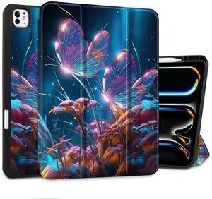 Yebiseven Case for M4 iPad Pro 13 inch 2024 Released Model A2925/A2926/A3007, Shockproof Tablet Case with Pencil Holder & Auto Wake/Sleep & Soft TPU Back Cover, Glitter Butterfly