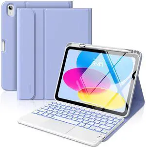 MoKo iPad 11th/10th Generation Case with Keyboard 2025/2024, 7 Colors Backlight & Multi-Touch Trackpad, Detachable Keyboard Folio Stand Cover with Pencil Holder, Lavender Purple