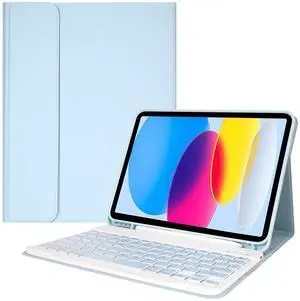 Nsyee Keyboard Case for iPad 10th Generation 10.9 inch 2022 and iPad 11th Generation A16 11 inch 2025, Detachable Bluetooth Keyboard Case with with Pencil Holder for ipad 10th/11th Gen, Light Blue
