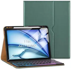VIKESI Keyboard Case for iPad Air 11-inch M3/M2 (2025/2024 Released) & iPad Air 5th/ 4th Generation 10.9-Inch,Leather Cover, Built-in Breathing Light, Function Row,Pencil Holder,Card Slots -Green