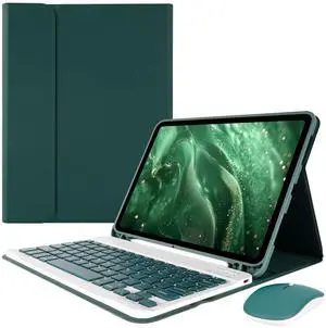 Nsyee Keyboard Case for iPad Air 11 inch M2 2024/M3 2025/iPad Air 4th/5th 10.9 inch & iPad Pro 11 inch (4th/3rd/2nd/1st), Built-in Pencil Holder, iPad Cases with Wireless Mouse and Keyboard, Green