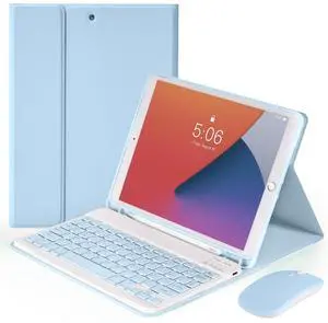 Nsyee Keyboard Case for iPad 9th 8th 7th Generation 10.2 Inch, Detachable Bluetooth Keyboard Case with Pencil Holder and Mouse for iPad 9th/8th/7th & iPads Air 3rd 10.5"/iPads Pro 10.5", Blue