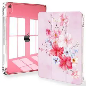 Feams Case for iPad A16 11th Generation 11 Inch 2025, iPad 10th Generation 10.9 Inch 2022 Case Clear Back Cover with Pencil Holder & Auto Sleep, Pink Bouquet