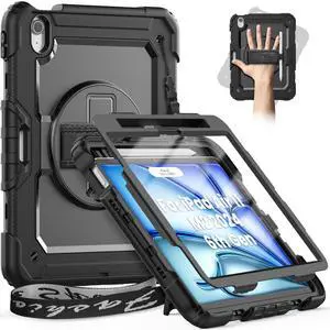timecity for iPad Air 11 Inch M2 Case 2024 6th Gen, 360deg Rotating Stand, Pencil Holder & Wireless Charging, Shockproof with Screen Protector & Shoulder Strap - for Designers & Professionals, Black