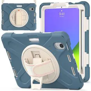 ZenRich Shockproof Case for iPad mini 7 (A17 Pro) 2024/ iPad mini 6th 2022, Heavy Duty Rugged Case with Pencil Holder/360°Rotating Kickstand/Handle/Carrying Shoulder Belt,CronflowerBlue