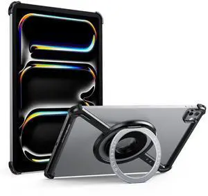 OATSBASF Metal Frameless Case for iPad Pro 11 Inch 5th Generation (2024), Slim Shockproof Protective Case with 360° Adjustable Ring Kickstand, Multiple Viewing Angles, Black