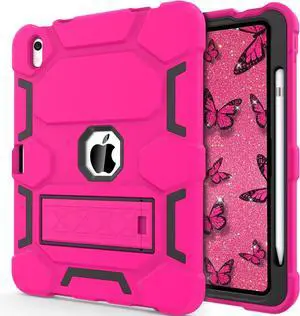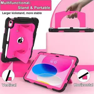 CCMAO Case for iPad 11-inch (A16) 2025/ iPad 10th Generation 2022 (10.9 Inch) with Durable Kickstand, Pencil Holder, Hybrid Heavy Duty Shockproof Protective Case for iPad 11/10 Gen, Pink+Black