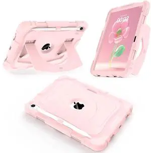 CCMAO Case for iPad 11 inch (A16) 2025/ iPad 10th Generation 2022 (10.9 inch) with Durable Kickstand, Pencil Holder, Hybrid Heavy Duty Shockproof Protective Case for iPad 11/10 Gen, Light Pink