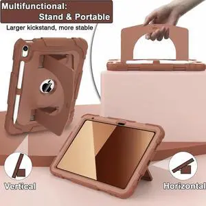 CCMAO Case for iPad 11 inch (A16) 2025/ iPad 10th Generation 2022 (10.9 inch) with Durable Kickstand, Pencil Holder, Hybrid Heavy Duty Shockproof Protective Case for iPad 11/10 Gen, Coffee