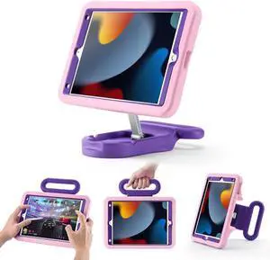 BATYUE iPad mini 5 Case - iPad mini 4 Case; Heavy Shockproof Drop Case with Pencil Holder/ 360° Swivel Stand/Shoulder Strap; Cover for iPad mini 5th/4th Generation 7.9 Inch; for Kids (Colourful Pink)