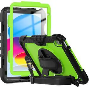 Herize Case Compatible with iPad iPad 11 inch (A16) 2025/10.9 inch (10th Generation) 2022 Aesthetic Green with Screen Protector ^^ Shockproof Cover W/Stand Handle Grip Shoulder Strap
