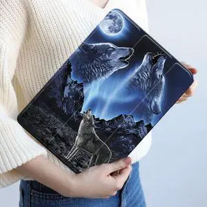 Cover for iPad Pro 10.5 with Pencil Holder Wolf Case for Apple iPad 9th 8th 7th Generation 10.2 Inch iPad Air 3rd Gen Cases Wolves Smart Slim Trifold Stand Protective Cover