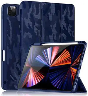 Wenlaty Compatible with iPad Pro 11 Inch Case 4th/3rd/2nd Generation with Pencil Holder, for iPad 11 Pro Case 2022/2021/2020, Slim Protective Cover with Soft TPU Back, Auto Wake/Sleep, CamouflageBlue