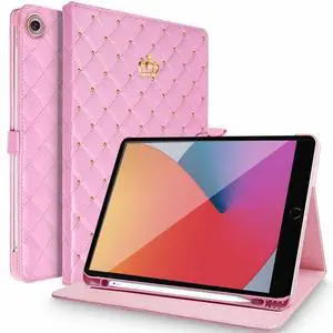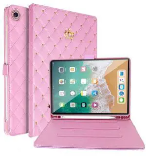 AuroiCCY for iPad 10.2 inch (2021/2020/2019) iPad 9th/8th/7th Smart Case with Pencil Holder, Cute Elegant Crown Girly Woman Shockproof PU Leather Flip Foil Auto Wake/Sleep Cover for iPad 10.2" (Pink)