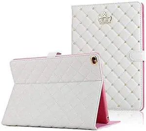 AmazFCCY PU Leather Case for iPad mini 5/ Mini 4, Cute Crown Bling Diamond Rhinestone Smart Auto Sleep/Wake with Kickstand Flip Shockproof for Apple iPad mini 5/4 7.9 Inch(White)