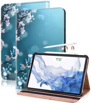 VODEFOX for iPad Air 11 Inch Case M3/M2 (2025/2024), iPad Air 5th Generation 2022/4th Gen 2020 10.9 Inch,PU Leather Folio Protective Cover with Card Solts,Supports Pencil Charging - Plum Blossom