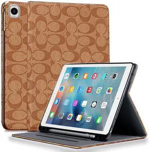 HYHCF Designer Compatible with iPad 9.7-Inch case (6th/5th Generation, 2018/2017) PU Leather with Pencil Holder Soft TPU Back Case,Auto Sleep/Wake Cover,for Women Girls Aesthetic-Brown