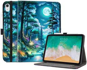 Lokigo Case for iPad (A16) 11th Generation 11 Inch 2025, for iPad 10th Generation 10.9 Inch 2022, Build with Pencil Holder/Hand Strap/Pocket, Protective 11th/10th Gen Stand Cover, Moon Forest