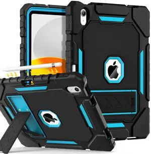 Grifobes for iPad A16 Case 11th Generation 11 inch 2025 / iPad 10th Generation Case 10.9 inch 2022, Heavy Duty Military Grade Shockproof Cover with Pencil Holder for i Pad 11/10 (Black+SkyBlue)