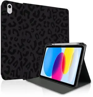 TopPerfekt Case for iPad 11th (A16) 11-inch 2025 / for iPad 10th Generation 10.9-inch 2022, Stand Folio Case Cover with Pencil Holder for Kids, Boys, Girls, Anti-Slip and Anti-Shock - Leopard Black