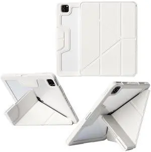 Military Grade Shockproof Case for iPad Pro 11 Inch 4th/3rd/2nd Generation (2022/2021/2020) with Pencil Holder, Auto Sleep/Wake, Clear PC Back Protective Slim Cute Magnetic Cover (White)