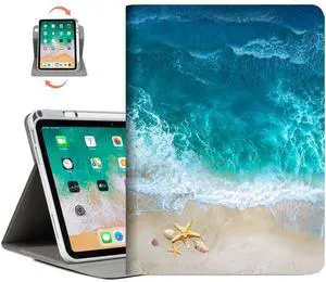 Vimorco Rotating Case for iPad A16 11th/10th Generation 2025/2022, for iPad A16 Case 11th/10th Generation 360 Degree Rotating, 4 Viewing Angles, Pencil Holder, Auto Wake/Sleep, Blue Ocean Beach