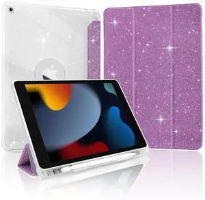 TopPerfekt Clear Case for iPad 9th / 8th / 7th Generation (2021/2020 / 2019) 10.2 Inch - Glitter Shiny Sparkly Cover with Transparent Back Shell, [Pencil Holder, Auto Sleep/Wake] Purple
