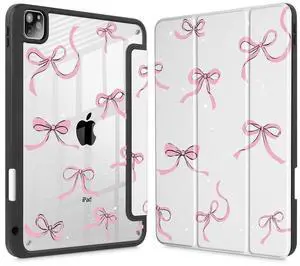 May Chen for iPad Pro 11 inch M2 4th Generation 2022, iPad Pro 11 3rd/2nd/1st Gen, Case with Transparent Shockproof Back Cover [Built-in Pencil Holder, Auto Sleep/Wake, Stars Bow