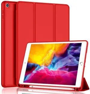 iMieet iPad 9th Generation Case 2021/iPad 8th Generation Case 2020 10.2 Inch with Pencil Holder, iPad 7th Gen 2019 Case with Soft Baby Skin Silicone Back, Auto Wake/Sleep Cover (Red)