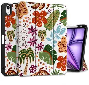 DONGKE for iPad Air 11 Inch Case M3 2025 / M2 2024 & iPad Air 5th 2022 / 4th Generation 2020 10.9 Inch, Ultra Thin Soft TPU Back Cover with Pencil Holder Support Auto Wake/Sleep, Tropical Florals