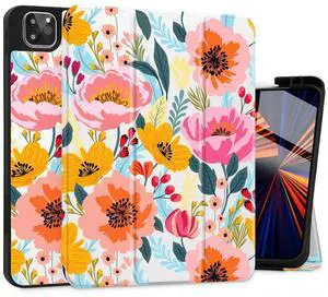 Tuiklol Case for iPad Pro 12.9 inch M2 Generation 6th / 5th / 4th / 3rd 2022 2021 2020 2018 Release - Built in Pencil Holder Slim Protective Cover with Auto Wake/Sleep, Vibrant Floral