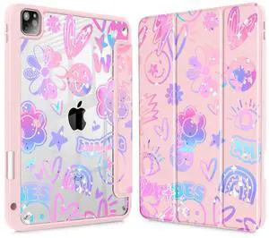 Tuiklol Case for iPad Pro 12.9 Inch M2 Case 2022 2021 2020 2018 Generation 6th/5th/4th/3rd,Built-in Pencil Holder Clear Transparent Protective Back Shell Cover, Fun Emotions Pink