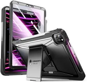 Case for iPad Air 11 Inch Case M2 / M3 (2024/2025) iPad Air 5th/4th Generaton 10.9 Inch (2022/2020) 6th Generation 2024 Cover for Kids with Pen Holder Screen Protector Thickned Cornor, Black Black
