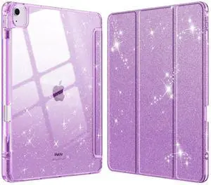 Fintie Hybrid Slim Case for iPad Air 13-inch (M3) 2025, (M2) 2024 - [Built-in Pencil Holder] Shockproof Cover with Clear Transparent Back Shell, Glittering Purple