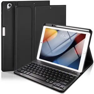 Baisla Keyboard Case for iPad 9th Generation 10.2'', iPad 8th/7th, Premium Stain-Resistant Detachable Wireless Keyboard Adjustable Grooves Case with Pencil Holder for iPad Pro 10.5/Air 3rd Gen(Black)