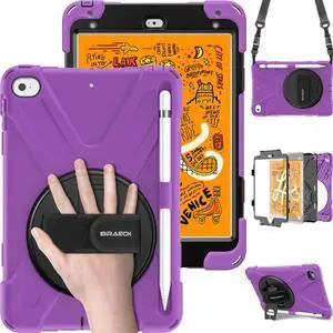 BRAECN iPad mini 5 Case,iPad mini 4 Case, Heavy Duty Shockproof Protective Rugged Case with Pencil Holder,Hand Strap,Kickstand, Shoulder Strap for iPad mini 5th/4th Generation 7.9 Inch for Kids