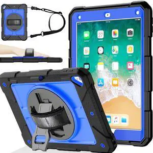 BMOUO Case for iPad 6th/5th Generation Case (9.7 inch, 2018/2017), 360Rotating Stand, Hand/Shoulder Strap Shockproof iPad 9.7 Case for iPad Air 2, Deep Blue