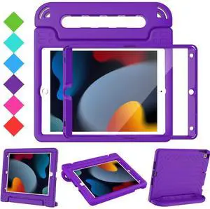 BMOUO Kids Case for iPad 9th/8th/7th Generation (iPad 10.2", 2021/2020/2019) - with Screen Protector, Shockproof Convertible Handle Stand iPad 10.2 9th/8th/7th Generation Case for Kids, Purple