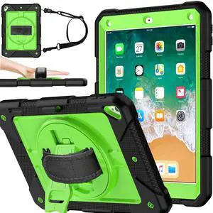 BMOUO Case for iPad 6th/5th Generation Case (9.7 inch, 2018/2017), 360Rotating Stand, Hand/Shoulder Strap Shockproof iPad 9.7 Case for iPad Air 2, Black and Green