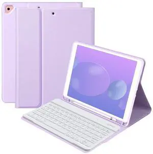 BQSS for iPad 9th Generation Case with Keyboard 10.2 Inch, Detachable Wireless Bluetooth Keyboard Case with Pencil Holder for iPad 9th/8th/7th, for iPad Air 3rd Gen/Pro 10.5 inch (Purple)