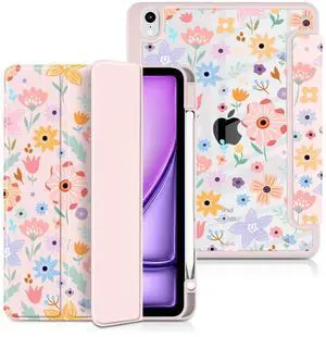 Batianda Case for iPad Air 13 inch 2025 (M3) 2024 M2 Chip [Built-in Pencil Holder] Shockproof Protective Stand Cover with Transparent Back Shell Soft TPU Bumper,Auto Sleep/Wake, Hand-Drawn Flowers