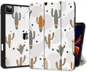 Yebiseven Case for iPad 10.2 inch 9th/8th/7th Generation, Smart Tablet Case for iPad 10.2" 2021/2020/2019, Hard Clear Acrylic Back Shell with Pencil Holder + Auto Wake/Sleep, Cute Cactus