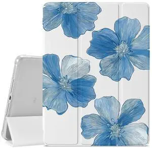 VibrantFruitique Unique Blue Hibiscus Case for iPad Air 13" (M3) 2025/ (M2) 2024/iPad Pro 12.9" 2022/2021 Protective Case,Pencil Holder & Clear Back & Trifold Cover for Women Scratchproof Cover