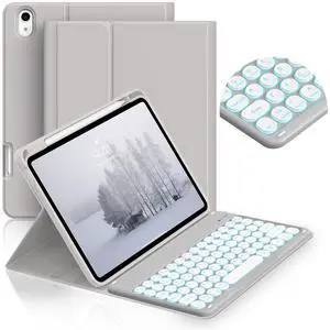 JKSML for iPad (A16) 11th/10th Gen case with Keyboard, Round Key, 7 Color Backlit, Detachable Wireless Keyboard, Stand Folio Cover with Side Pen Holder for iPad 10.9" (2022)/ 11" (2025) - Gray