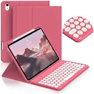 JKSML for iPad (A16) 11th/10th Gen case with Keyboard, Round Key, 7 Color Backlit, Detachable Wireless Keyboard,Stand Folio Cover with Side Pen Holder for iPad 10.9" (2022)/ 11" (2025) - Red